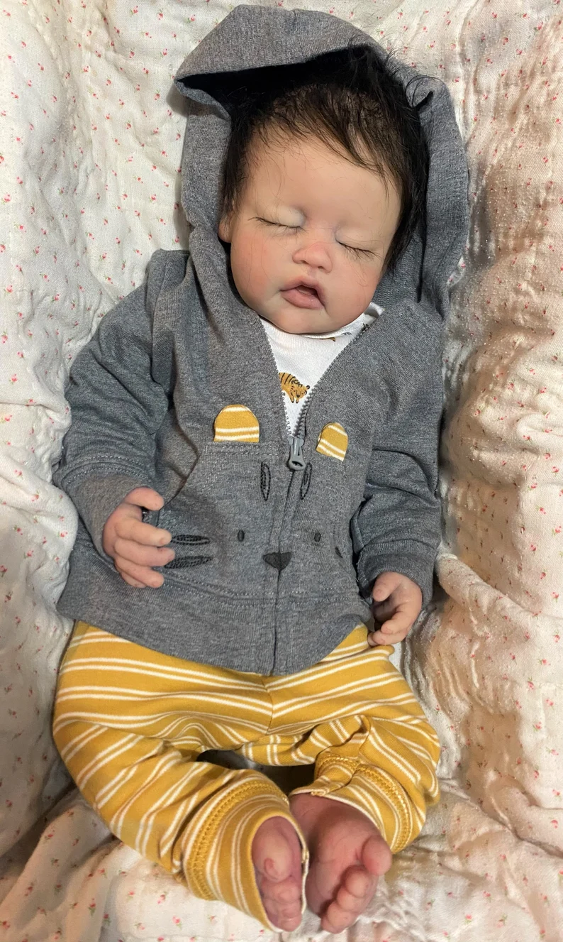 Baby boy George is amazingly real looking! His sculptor is Kathy Romero-Biscuiti. He is sleeping with his mouth open. You can even see his tongue! He is a big boy at 21 ” long, weighs 9 lbs- 8 oz. He is excellent quality and he is very flexible and squishy. We can change his skin tone and hair color to whatever you want! He can also be made into a girl . Our babies come with 2 outfits, they are wearing an outfit and I put in an extra outfit, along w/ hairbrush, paci , bottle and maintenance instructions. OUR CUSTOM REBORN BABIES ARE NON-RETURNABLE AND NON-REFUNDABLE. Standard handling time is pending sculpture availability. buy dmt usa